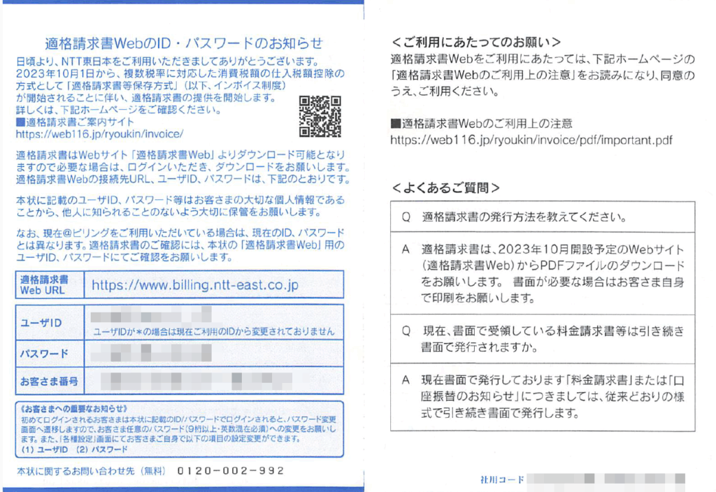 NTT東日本を例に記載させていただきますが、インボイスの提供方法は、支払方法関らず基本的に共通です。